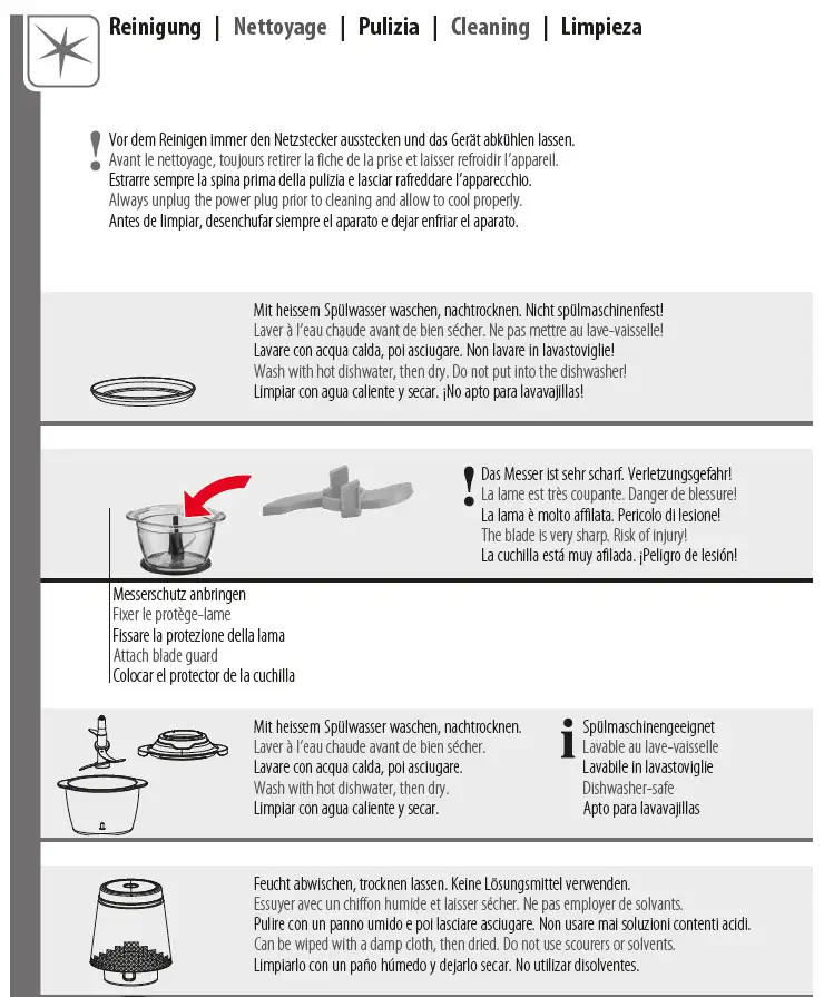 - Doppellagige 4-fach Edelstahlklingen für schnelles, gleichmässiges Zerkleinern