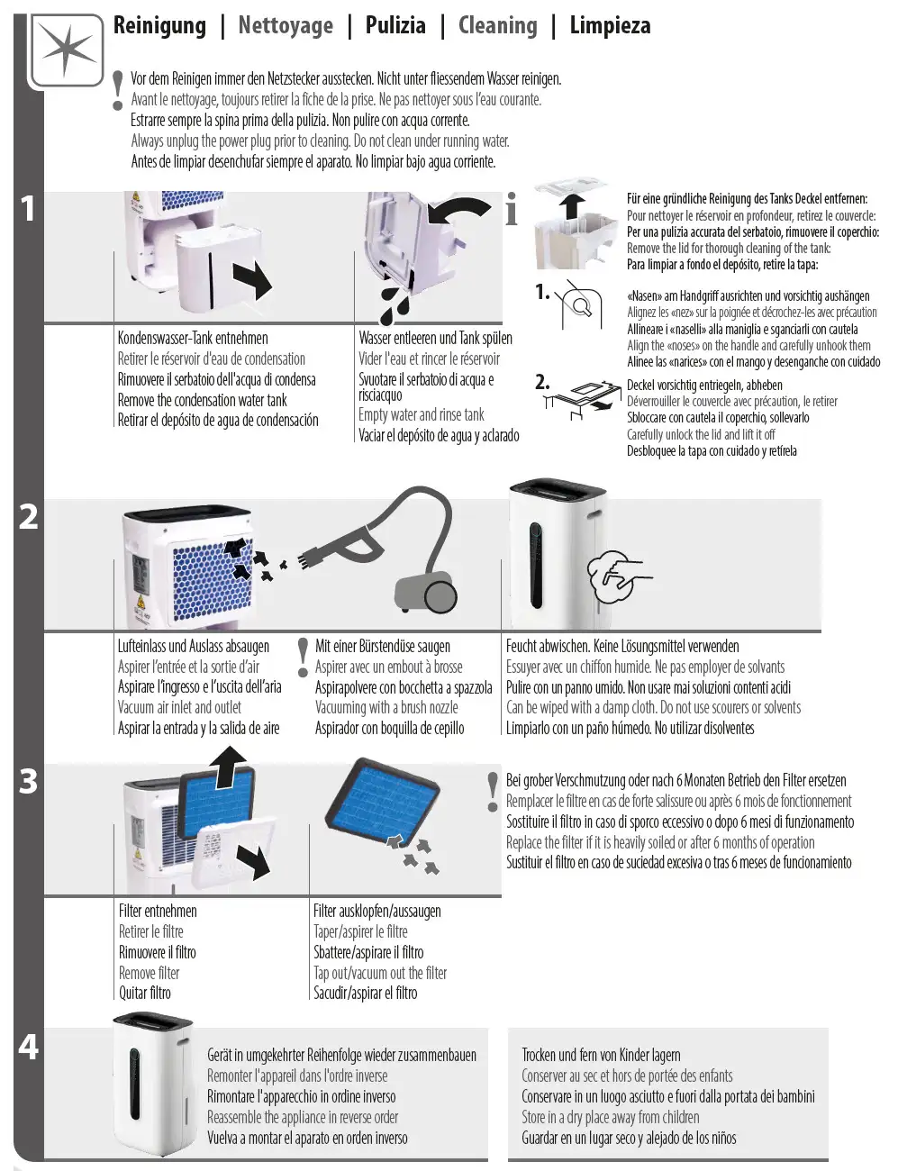 - Vier Entfeuchtungsmodi inkl. Wäschetrocknung, Schlafmodus, Kindersicherung