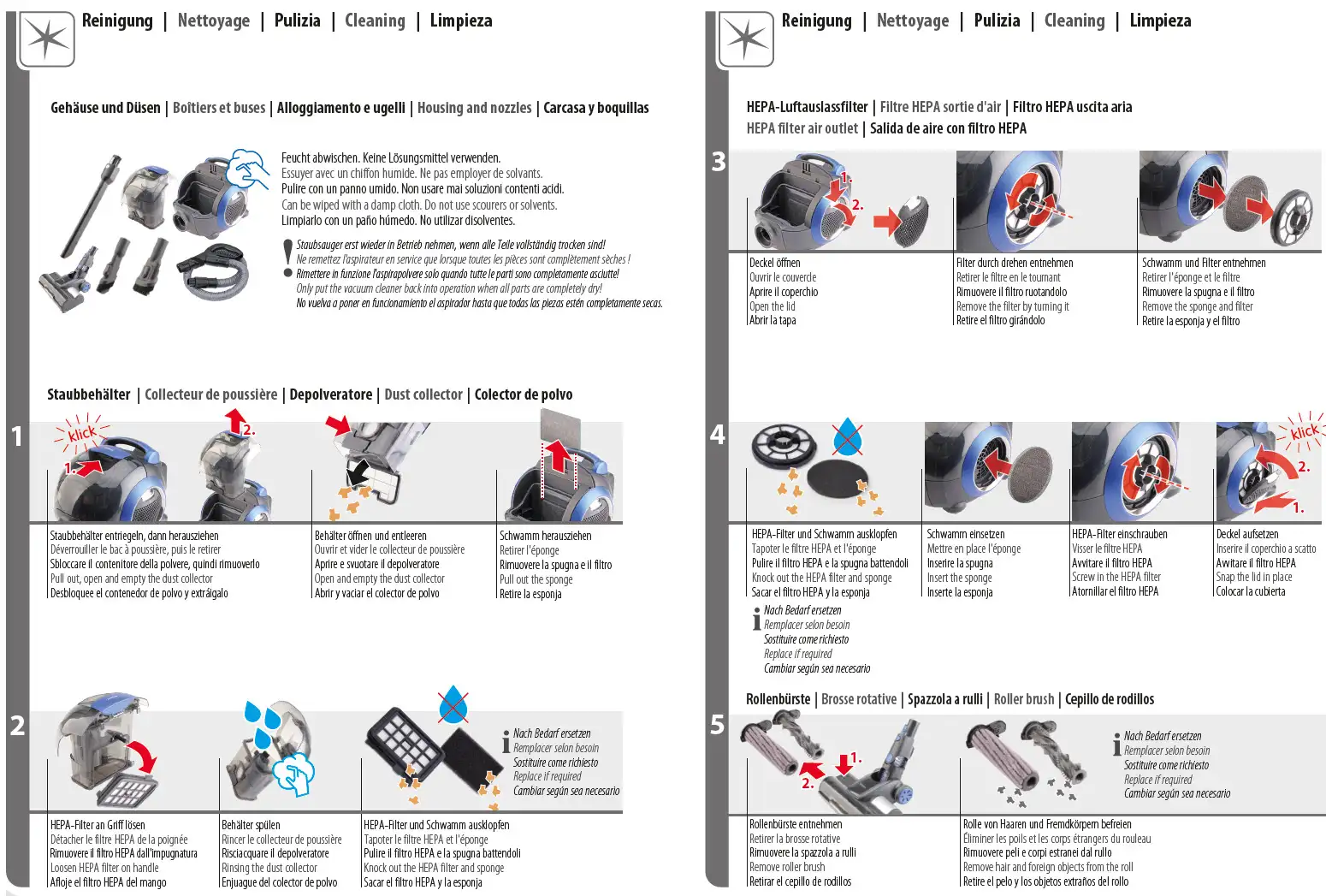 - Easy to change hard floor and carpet brush roll for optimal results on all floor types