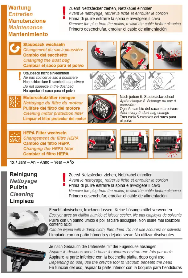 Le Comfort Clean T3788 assure une propreté sans effort dans toute la maison. Grâce à la brosse universelle de haute qualité avec régulateurs d‘air pratiques, vous pouvez ajuster la puissance d‘aspiration selon vos besoins. Avec un câble de 7 m et un rayon d‘action de 11 m, vous nettoyez rapidement et confortablement de grandes surfaces. Pour une propreté hygiénique, le T3788 est équipé d‘un filtre HEPA et d‘un sac à poussière pratique. Tandis que le filtre retient efficacement la poussière, le pollen et les allergènes, le sac permet une élimination simple et propre. Ainsi, votre intérieur reste non seulement impeccable, mais l‘air également pur et hygiénique. Le système Click éprouvé avec tube télescopique ergonomique garantit une manipulation confortable, tandis que la régulation continue de la puissance d‘aspiration vous offre un contrôle total. Avec le suceur 2-en-1, vous nettoyez aussi sans effort les zones difficiles d‘accès ou les tissus d‘ameublement. Et grâce au système parking intégré, vous pouvez poser le T3788 en toute sécurité pendant de courtes pauses ou le ranger de façon compacte après l‘aspiration. Le Comfort Clean T3788 allie performance de nettoyage efficace et confort d‘utilisation bien pensé – pour une maison où l‘on se sent tout simplement bien.