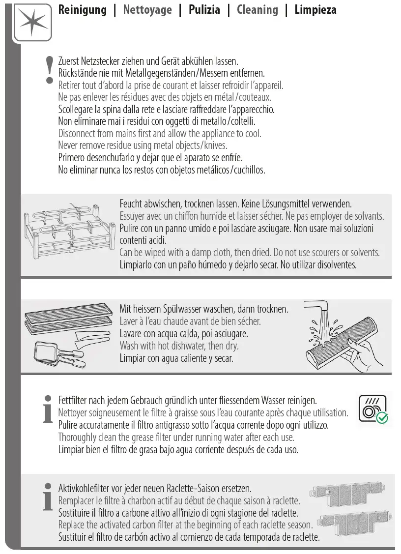 Quand les températures baissent dehors, on se rapproche autour de la table. Avec le Trisa Raclette Pure Melt, chaque repas devient un moment chaleureux, savoureux et convivial, sans que les odeurs ne s’installent dans tout l’appartement. Une alliance innovante entre design suisse, précision technique et culture du goût authentique. Le système d’aspiration intégré capte fumée et odeurs directement au-dessus de la plaque de cuisson et au niveau des poêlons. Les deux zones peuvent être réglées séparément sur les côtés gauche et droit. Un filtre à graisse intégré retient efficacement les résidus avant que les odeurs ne soient réduites de manière significative par les deux filtres à charbon actif situés sur la face inférieure. L’air reste ainsi agréable et il n’est plus nécessaire d’aérer pendant des heures après le repas. Avec une puissance de 1500 watts, l’appareil atteint rapidement la température souhaitée et assure une répartition homogène de la chaleur. La plaque en fonte d’aluminium avec revêtement antiadhésif se nettoie facilement. Huit poêlons robustes, des spatules en plastique assorties et un repose-poêlons en inox complètent parfaitement l’expérience raclette. Un appareil à raclette qui rend les moments partagés encore plus agréables, parce que le plaisir reste à table et non dans toute la maison.